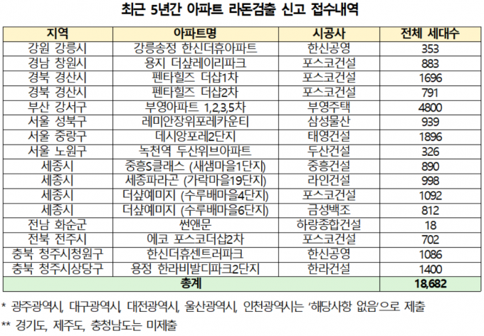 소극적 태도는 건설사도 마찬가지다. 라돈 피해를 호소한 아파트 주민들이 찾아간 곳은 포스코건설, GS건설 등 대형건설사다. 앞서 정동영 의원이 발표한 '아파트 라돈 검출 접수 내역'에서 건설사별 검출 주택 수는 포스코 건설(5개 단지·5164가구)가 가장 많았다. 이어 부영주택(4개 단지·4800가구), 한신공영(2개 단지·1439가구)순이었다.