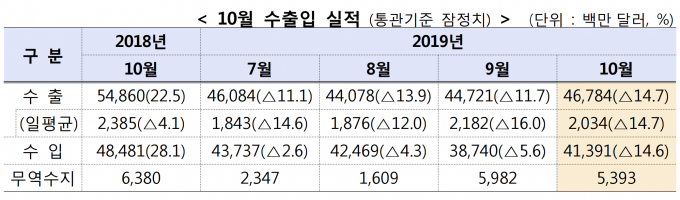 ▲ 10월 수출입 실적 [산업통상자원부 제공]