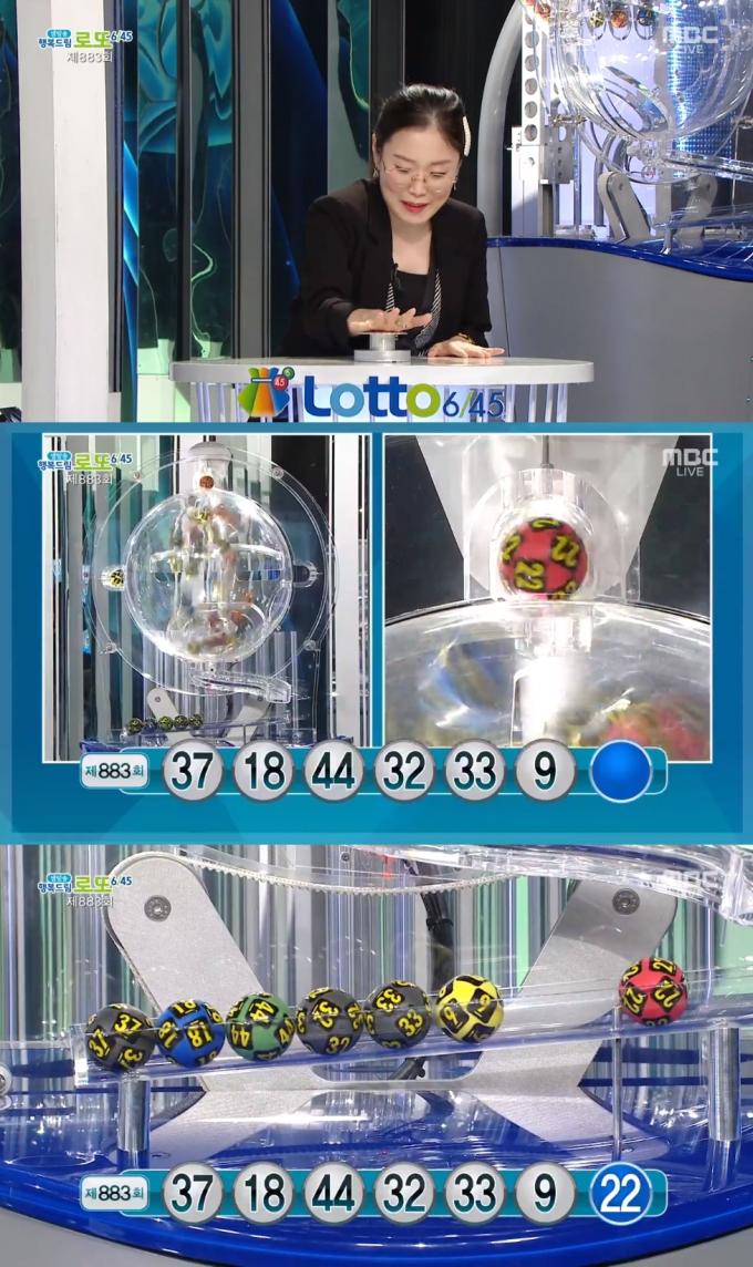 2일 방송된 MBC '생방송 행복드림 로또 6/45'에서는 제883회 로또복권 당첨번호 추첨이 진행됐다. 이날 방송에는 방송인 박슬기가 출연해 복권 추첨 버튼을 눌렀다.