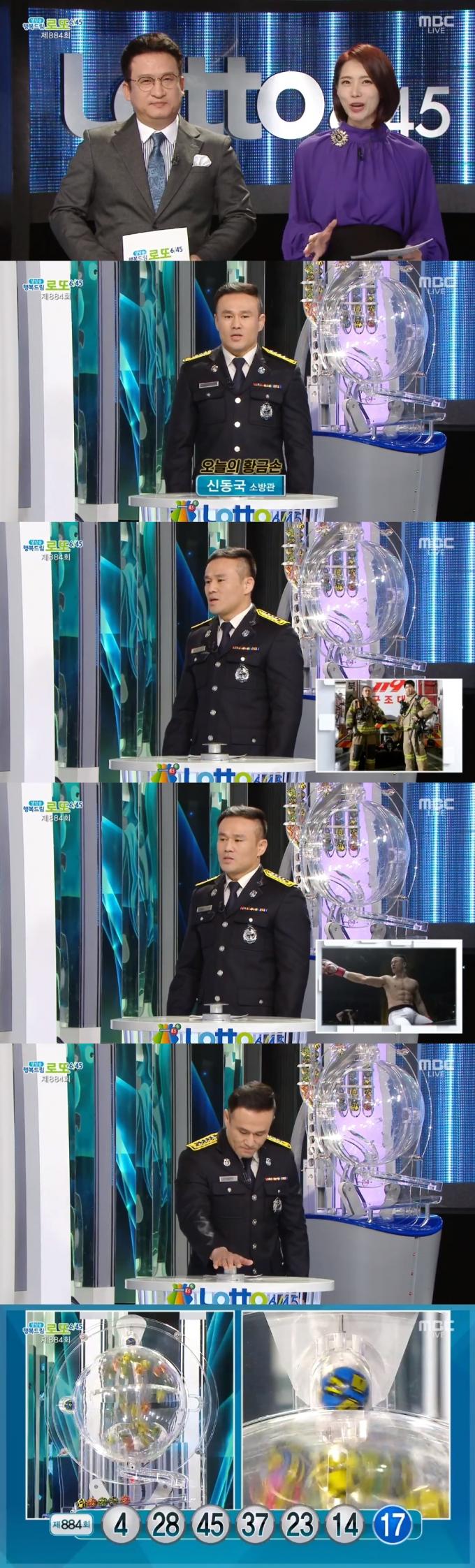 9일 방송된 MBC '생방송 행복드림 로또 6/45'에서는 제884회 로또복권 당첨번호 추첨이 진행됐다. 이날 방송에는 신동국 소방관이 황금손으로 출연해 복권 추첨 버튼을 눌렀다.