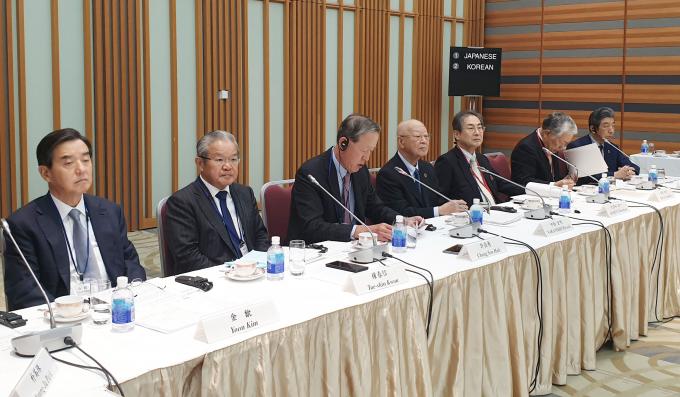 허창수 전경련 회장은 인사말을 통해 "한일 양국은 1965년 국교정상화 이후 많은 갈등이 있었지만 항상 미래지향적으로 문제를 해결해 온 만큼 당면한 무역갈등도 조기에 해결해야 한다"고 강조했다.