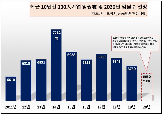 특히 100대 기업 내 직원과 임원 비율이 100대 1 수준이기 때문에 임원 100명의 자리가 사라진다는 것은 1만 명에 상당하는 직원도 구조조정 될 가능성이 높다는 점에서 우려가 크다고 분석했다.