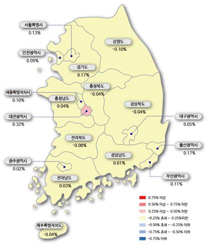 ▲시도별 아파트 매매가격지수 변동률 [한국감정원 제공]