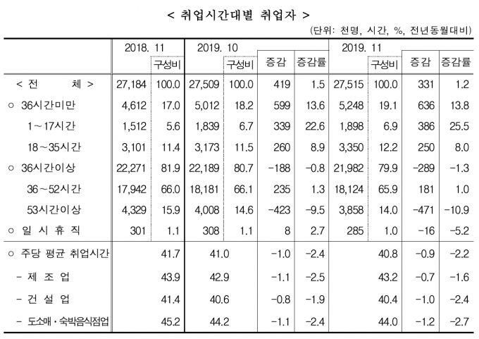 주 평균 17시간 이하 취업자 38만6000명…통계작성 후 최대