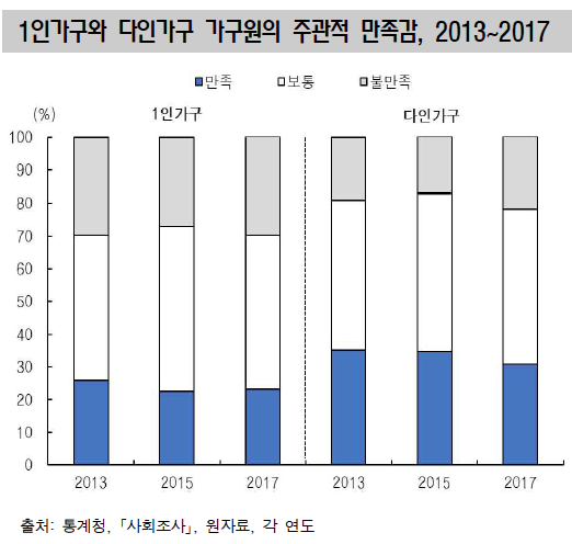 ▲ 1인 가구와 다인가구 가구원의 주관적 만족감 [통계청]