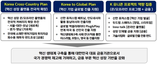 신한금융은 우선 'Korea Cross-County Plan'을 통해 서울-대전-호남의 세로축과 경기-영남을 잇는 가로축으로 전국에 혁신성장 기반을 마련한다는 계획이다.