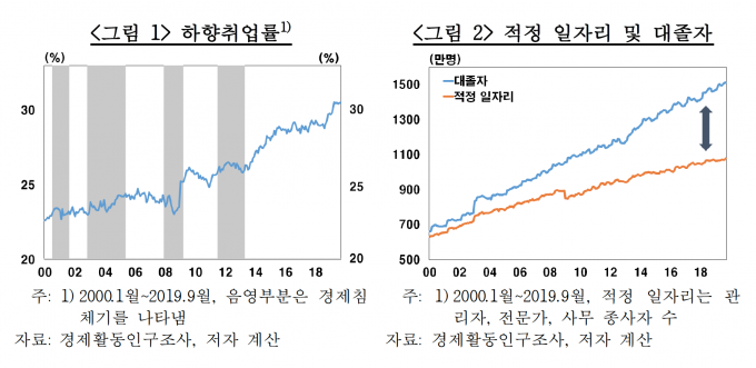 하향취업자 비율의 증가 추세는 고학력 일자리 증가(수요)가 대졸자 증가(공급)를 따라가지 못하는 노동시장의 구조적인 수급 불균형을 반영한 것으로 분석됐다.