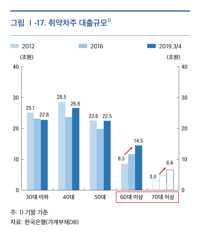 특히 고연령층은 소득 대비 부채 수준이 높아 채무상환능력이 상대적으로 취약했다.