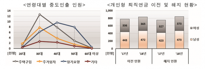 20대는 주거 임차, 30대는 주택 구입, 40대 이상은 장기 요양 목적의 중도인출이 가장 많았다.