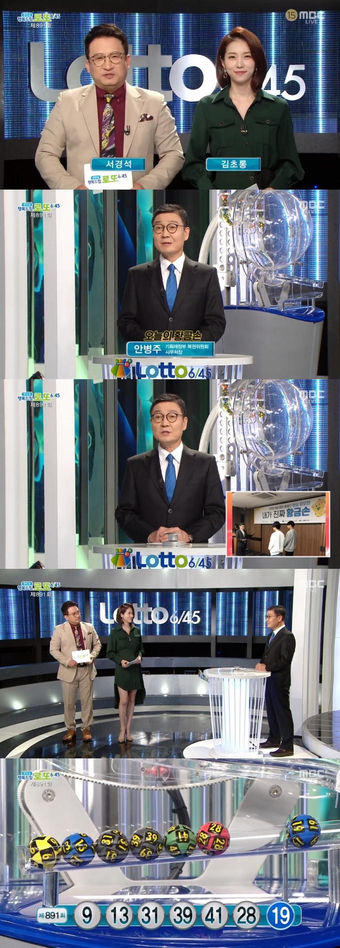28일 방송된 MBC '생방송 행복드림 로또 6/45'에서는 제891회 로또복권 당첨번호 추첨이 진행됐다. 이날 방송에는 기획재정부 복권위원회 안병주 사무처장이 황금손으로 출연해 복권 추첨 버튼을 눌렀다.