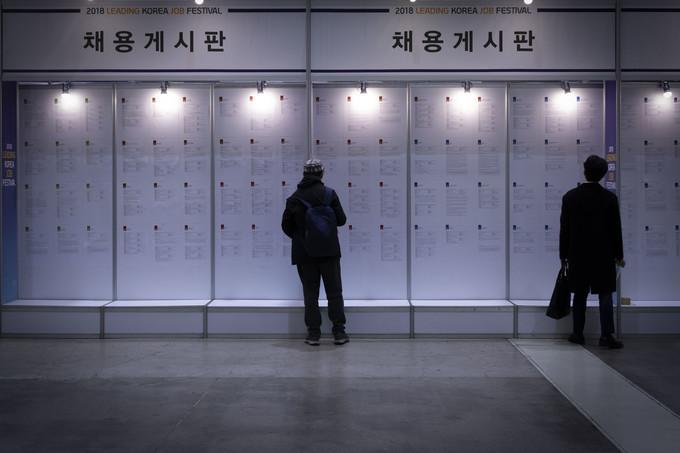▲ 채용공고를 살펴보는 구직자들. [문재원 기자]