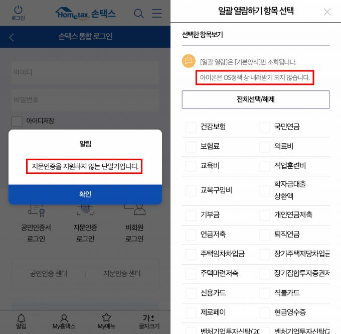 아이폰은 소득·세액공제 자료를 내려받는 데도 한계가 있었다. '아이폰은 OS정책 상 내려받기 되지 않습니다'라는 문장 앞에 결국 모바일 연말정산의 꿈은 접어야 했다. 다만 상세 조회는 할 수 있어 빠진 내역이 있는지 확인하는 것까지는 가능했다.