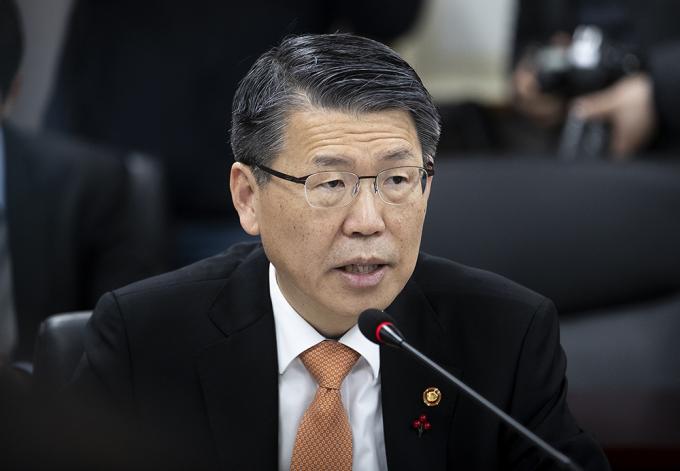 ▲ 은성수 금융위원장이 16일 오후 서울 종로구 정부서울청사에서 열린 저축은행업계 CEO 간담회에서 모두발언을 하고 있다. [정병혁 기자]