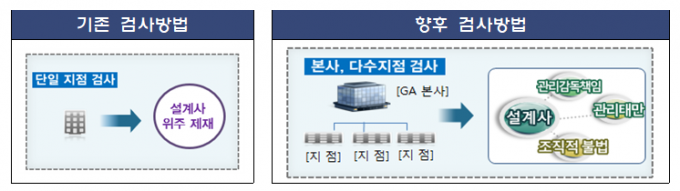 이에 금감원은 기존의 부문적 검사에서 벗어나 영업행위 전반을 살펴보는 검사를 시행할 것이라 밝혔다. 보험대리점 본사 및 지점에 대한 검사를 병행해 조직적인 위법행위, 본사 및 경영진의 관리감독책임 등도 집중 점검할 계획이다.