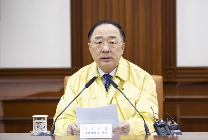 홍 부총리는 이날 정부서울청사에서 신종 코로나바이러스 대응 관련 관계부처 장관회의를 열고 "정부로서 지금 가장 중요한 것은 철저한 방역을 통해 인명 피해 없이 바이러스 확산을 막고 사태를 조기에 끝내는 것"이라며 "경제에 미치는 영향을 최소화하고 경기 회복 모멘텀을 지켜내는 것에 진력하겠다"고 말했다.