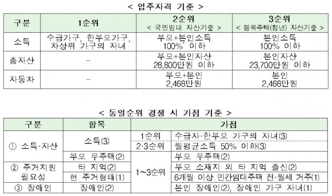 또 소득·자산 범위와 기준 등 입주자격을 간편하게 개선하고 동일 순위 내 주거지원의 시급성을 판단할 수 있도록 가점제가 도입된다.